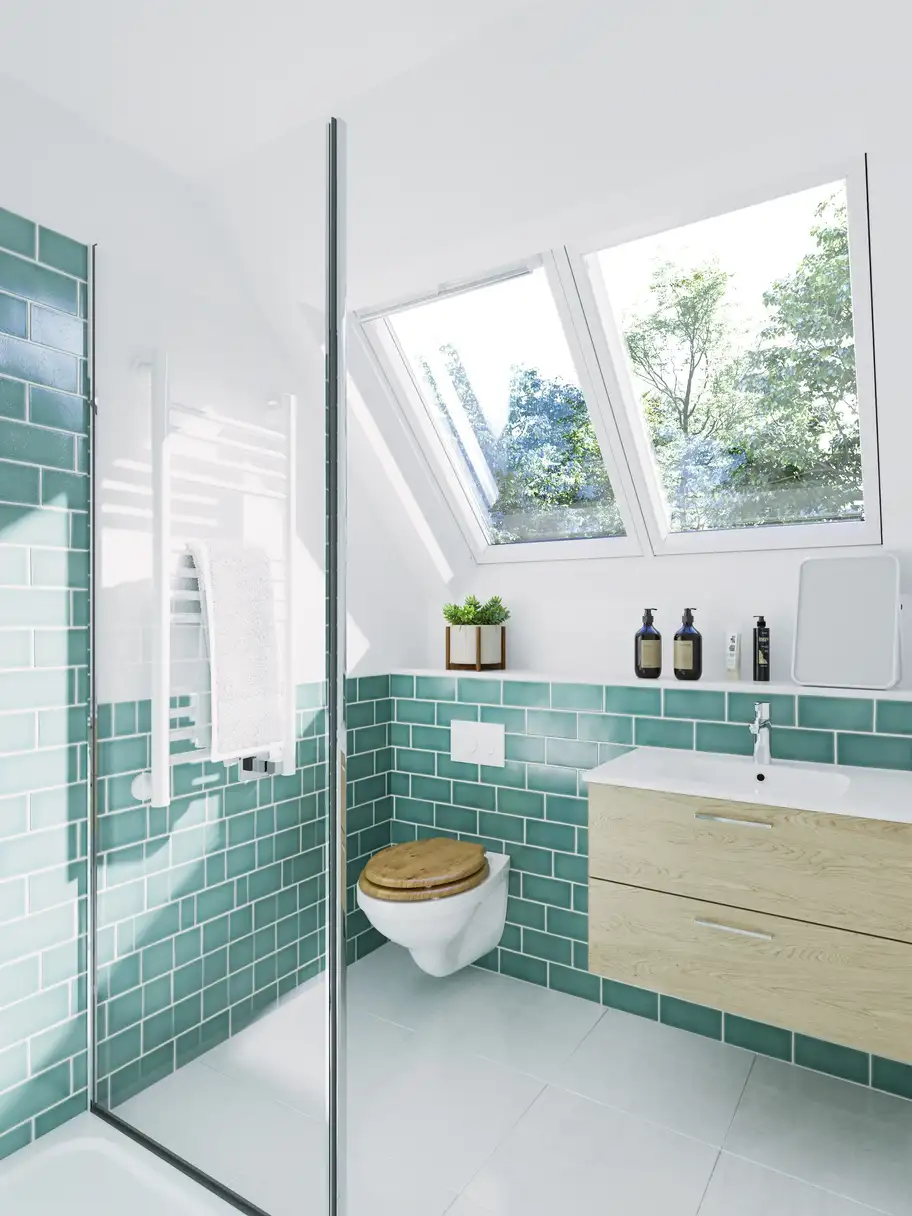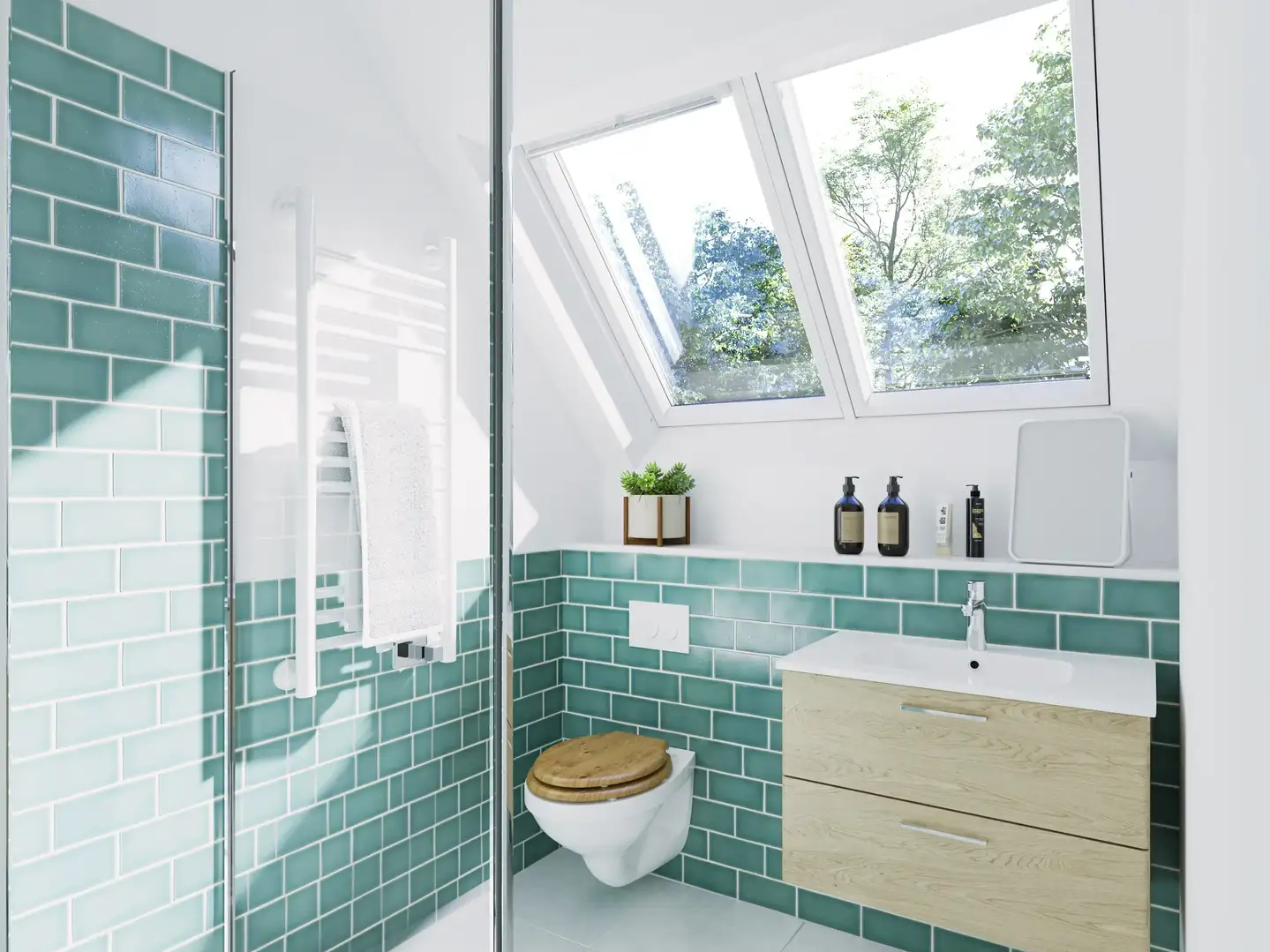 Roof windows also improve ventilation making them an attractive and practical choice. They allow warm moist air, such as steam from the shower, to rise and escape to minimise humidity and prevent mould and mildew and, if they are combined with vertical windows, they create cross ventilation, which will flush out stale, damp-air more effectively.