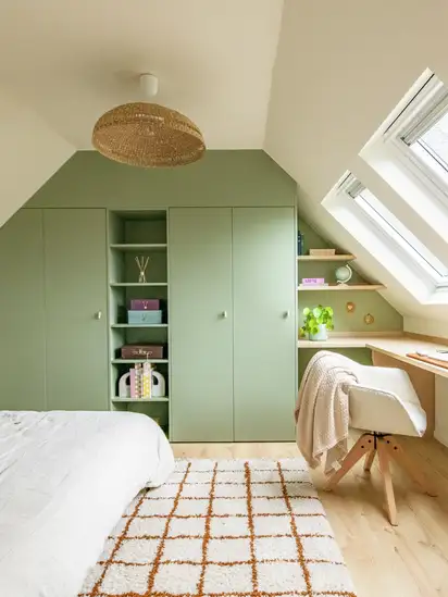 2. Maximise your loft layout with well-designed furnitureChoose custom-designed or a collection of versatile furniture to optimise every inch of the space under the slopes of your roof. Position your furniture so that you can easily access everything you need in your loft space.