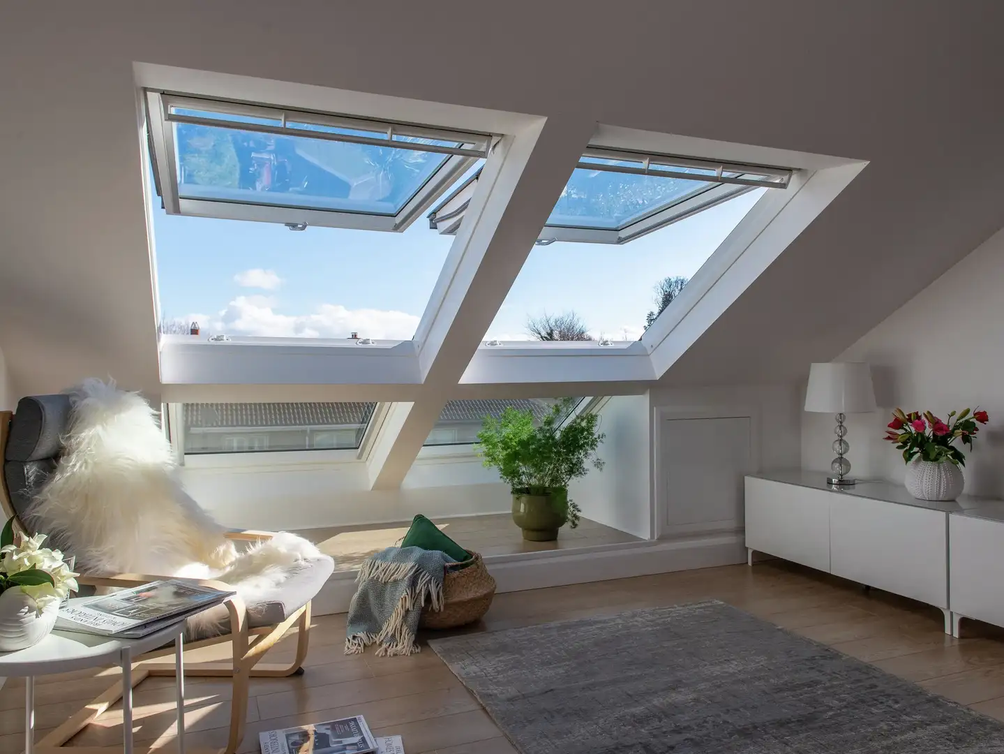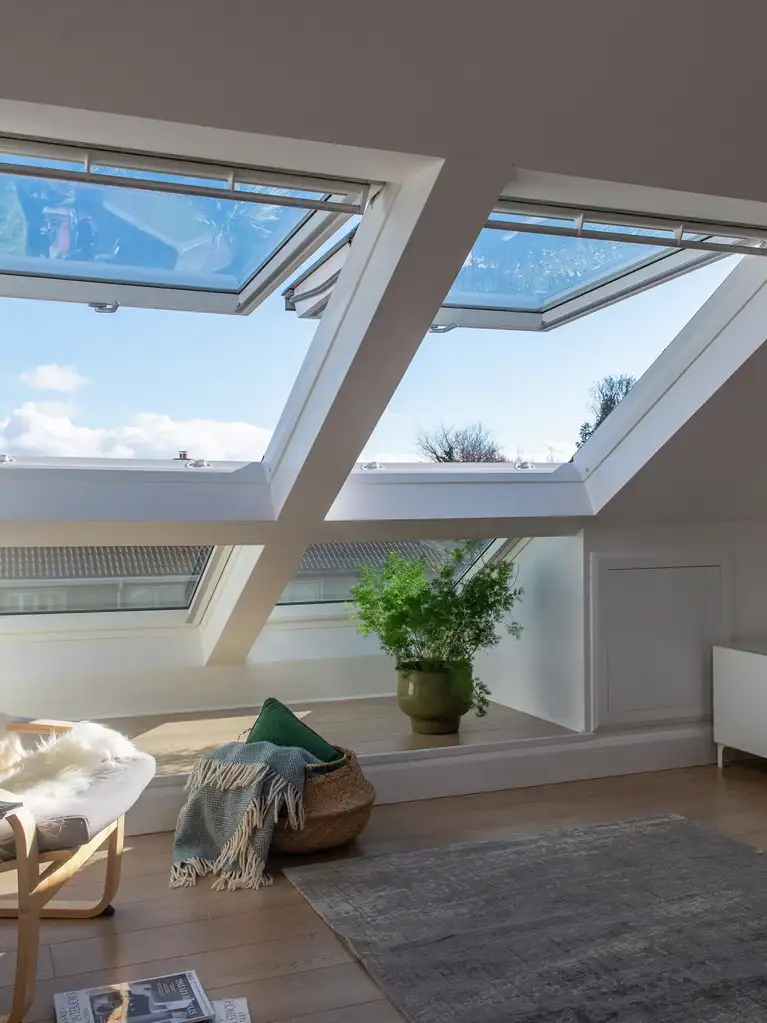 In the UK, grey skies and short winter days make natural light even more valuable. It not only improves mood and wellbeing but can also reduce the need for artificial lighting — cutting energy costs and boosting sustainability. If you'd like more natural light in your space, consider installing roof windows or a roof balcony window. In rooms without access to windows, consider adding a VELUX sun tunnel to funnel natural light in from the roof.