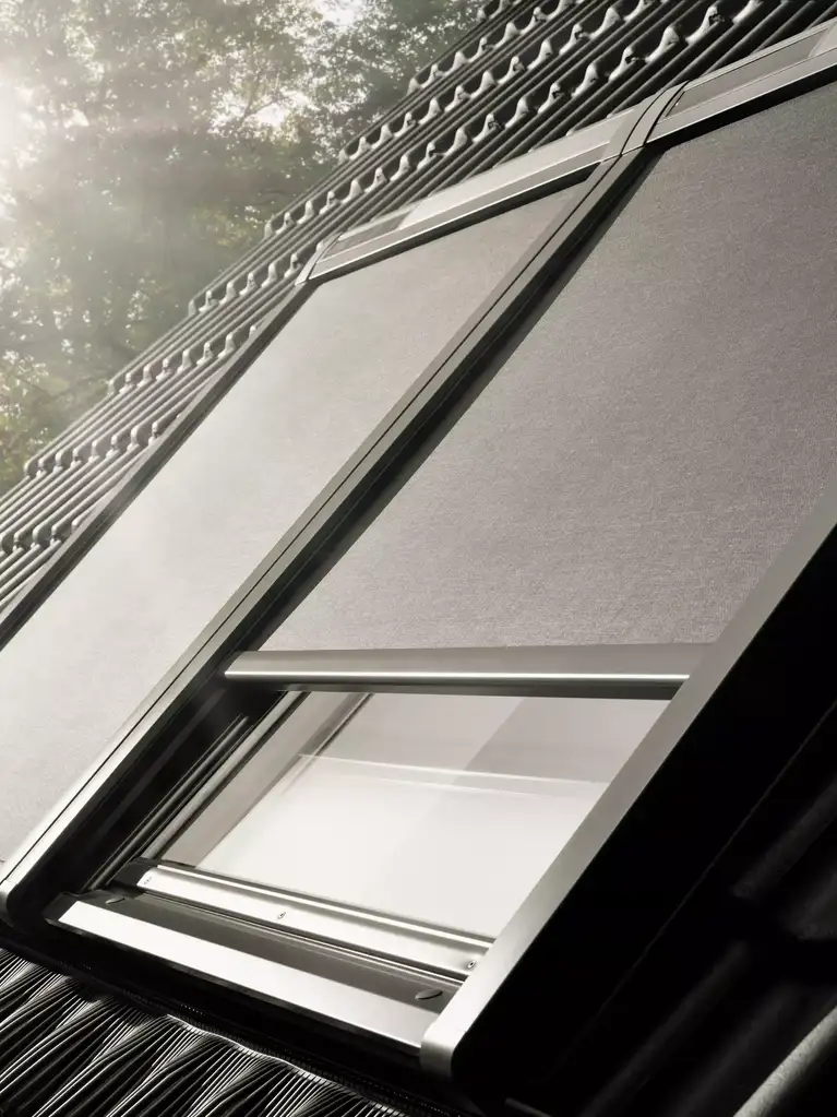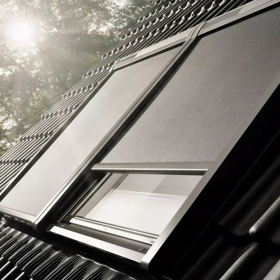 The anti-heat blind can be installed from inside the room (for roof windows from 78cm wide). The solar anti-heat blind requires no electrical connection, so you don't have to run any cables. Installation can be completed in less than an hour if the VELUX roof window is accessible by hand and under optimal installation conditions. It will not affect your interior design. Electric anti-heat blind connects directly to your electric VELUX roof window. If you install them on a manual roof window, connect to a power supply unit (KUX 110). The manual anti-heat blind can be installed from inside the room by one person in just 15 minutes; all you need is a screwdriver.