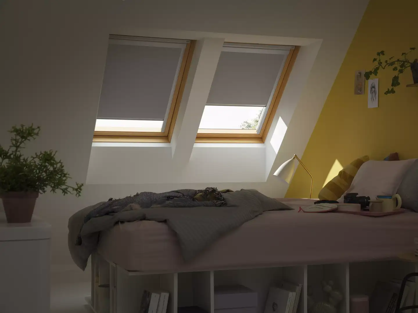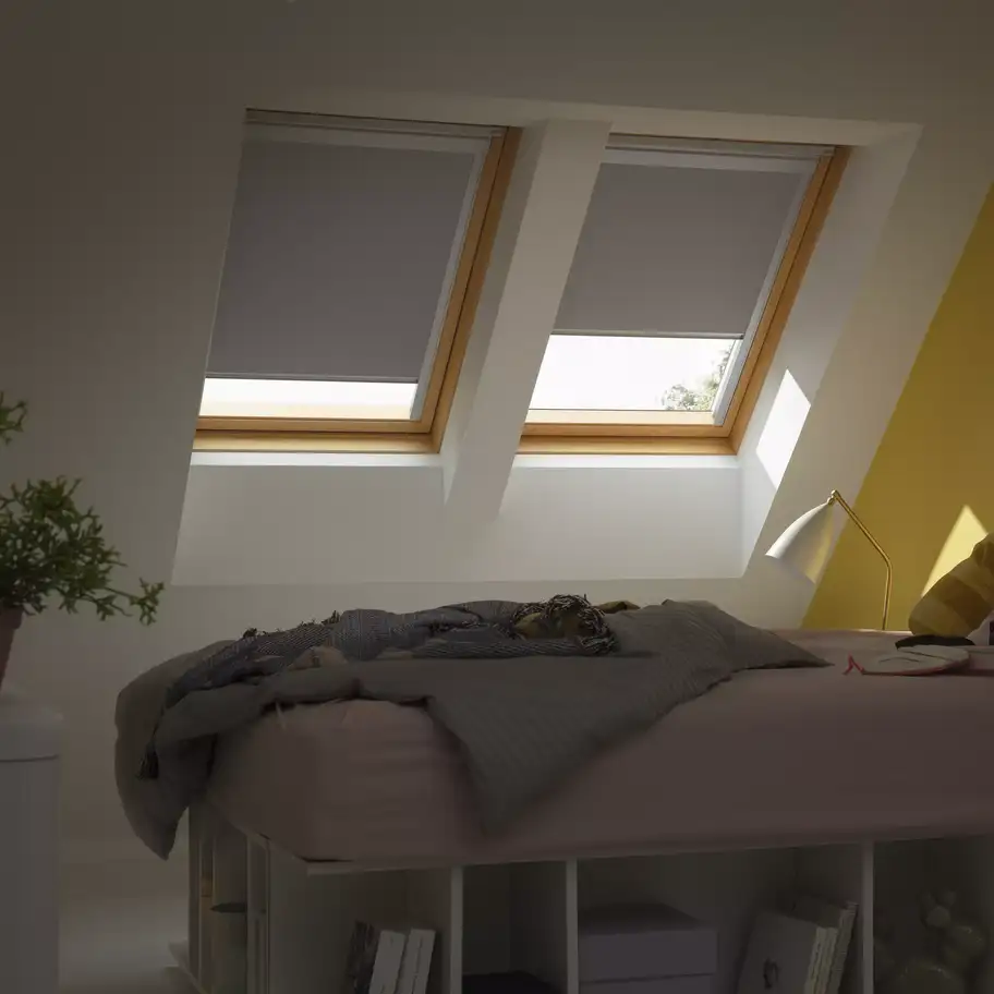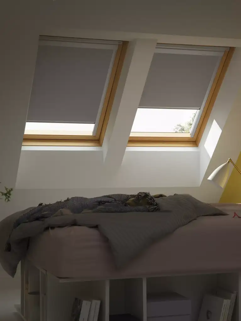 VELUX basic blackout roller blinds provide great views of the outdoors when not in use, and ensure blackout effect for a restful sleep at any time of day.
