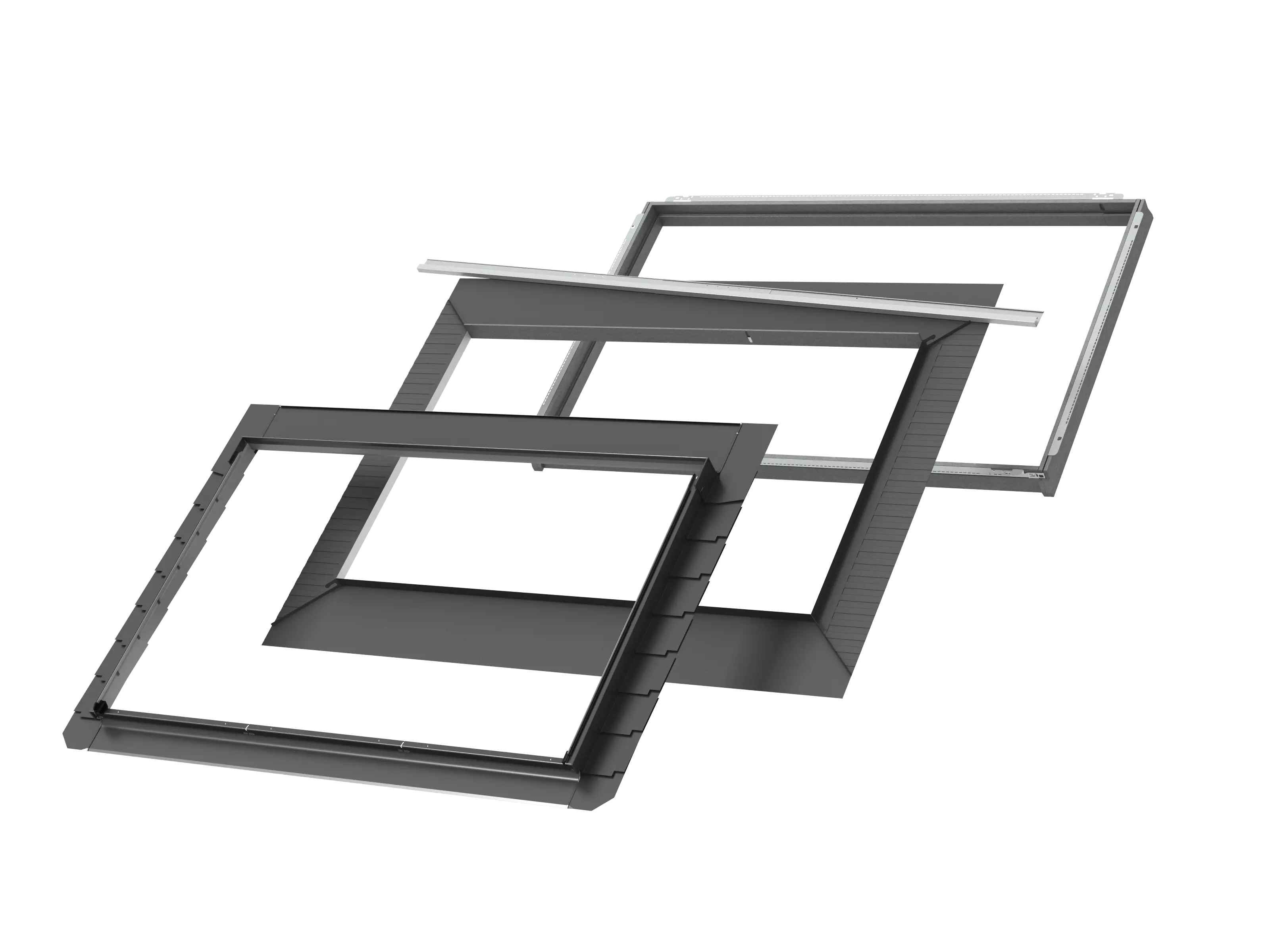 Flashing EDLS is for installation of a 3in1 roof window. The VELUX Pro+ flashing set (EDLS 2000) includes the BFX underfelt collar for a weatherproof installation and and the BDX insulation collar for added insulation.