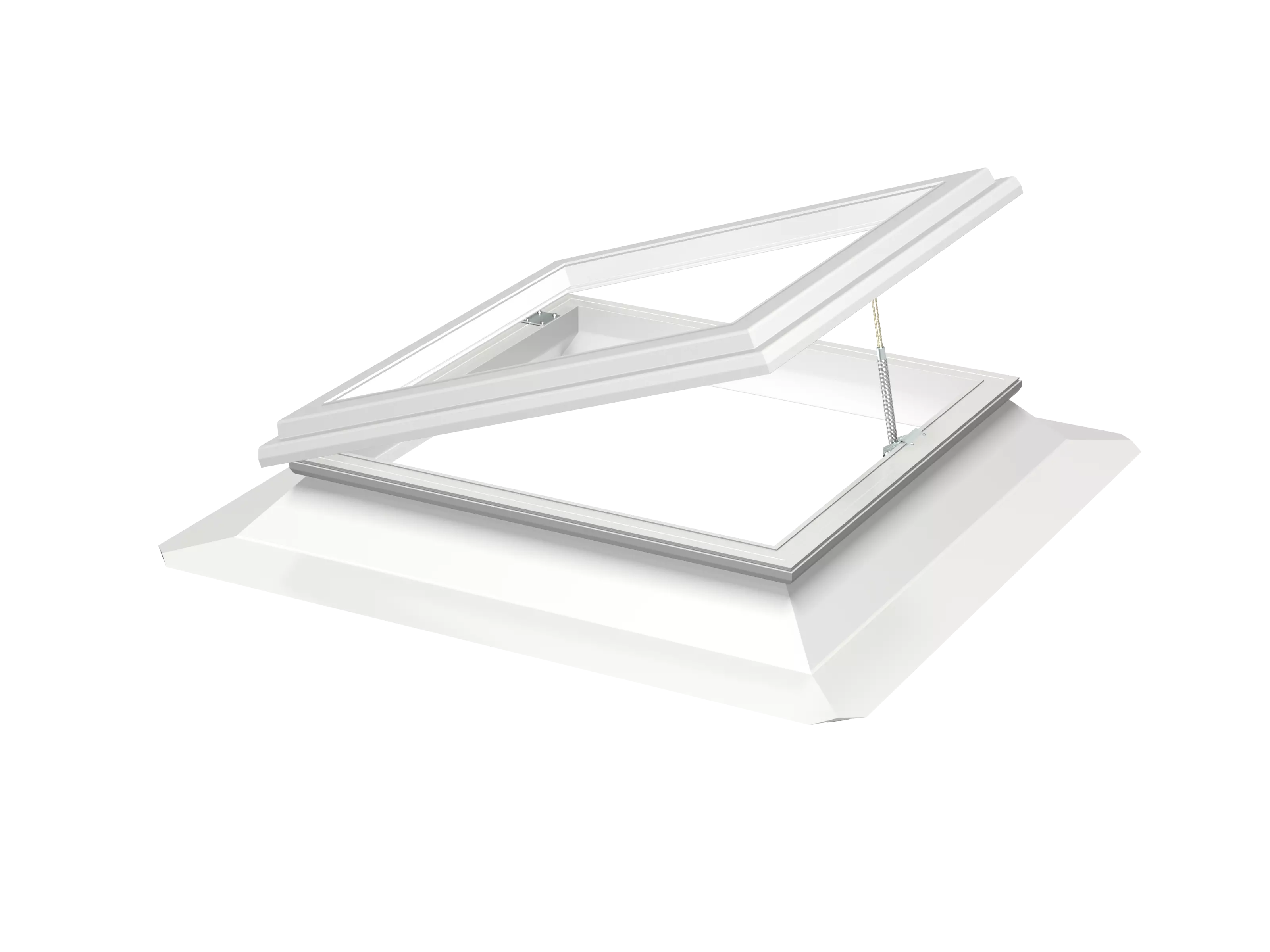 Long-lasting, durable PVC base units in three heights. The fixed dome with glazing is equiped with a ventilation sash. It can be manually operated with an operation rod to let in fresh air. Available in opaque 2- or 3-layer dome skins in either polycarbonate or acrylic.