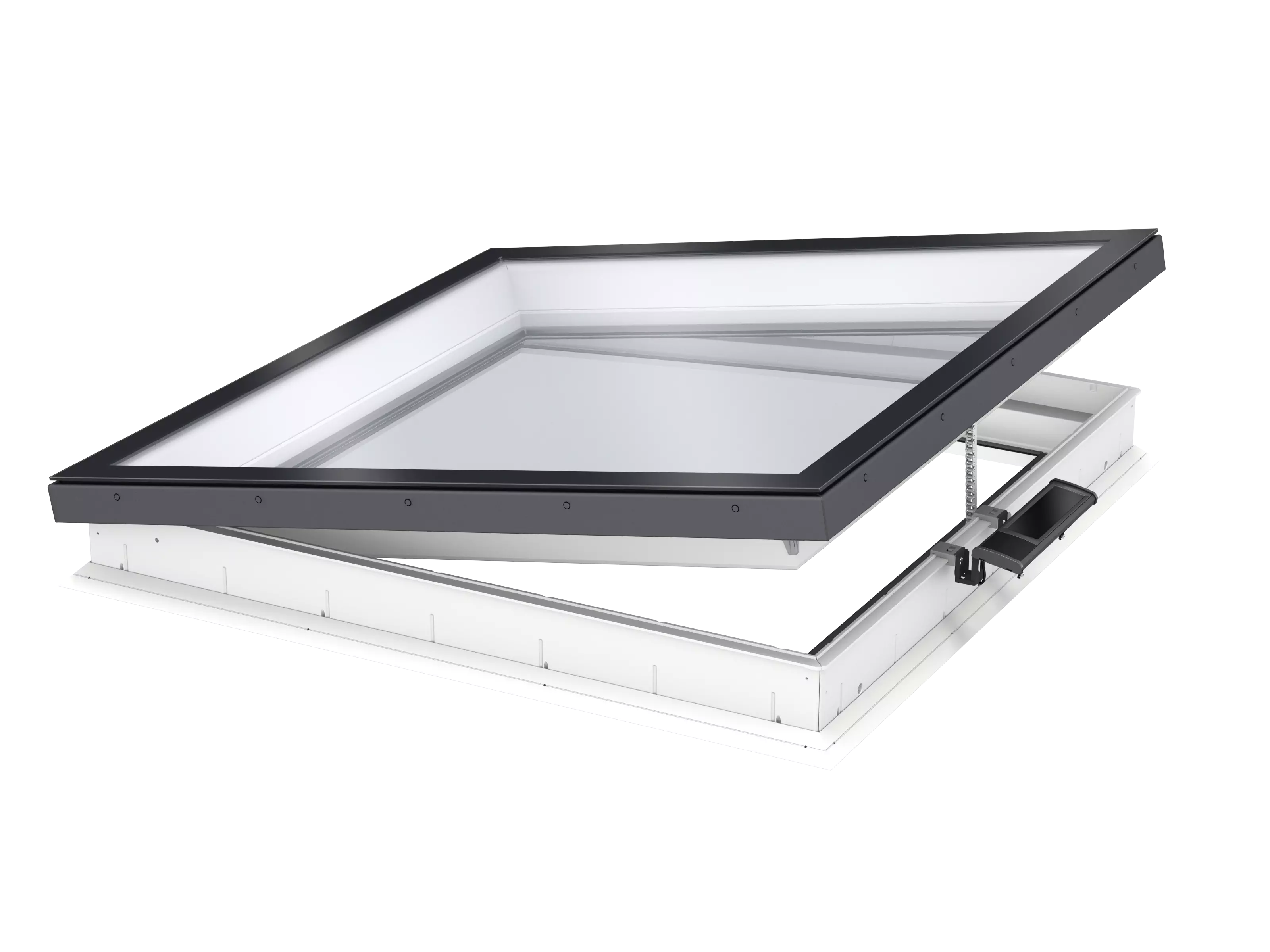 CVU glass rooflight base unit, solar-powered, ISU 2093 flat glass top unit