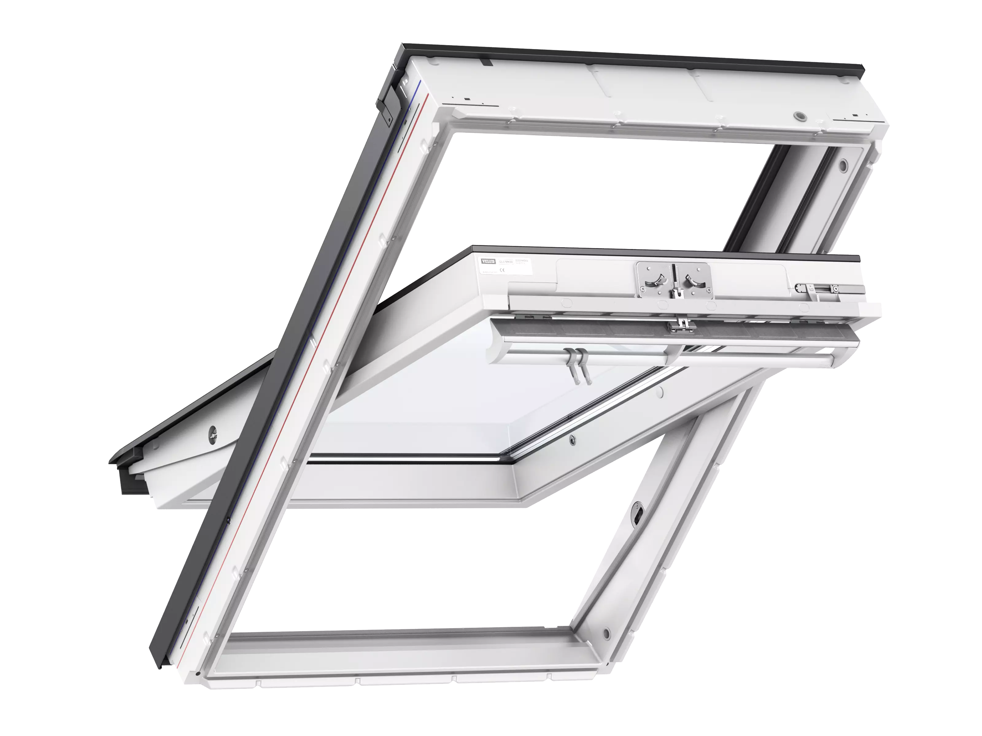 GGU Q centre-pivot, burglary-resistant roof window, white maintenance-free